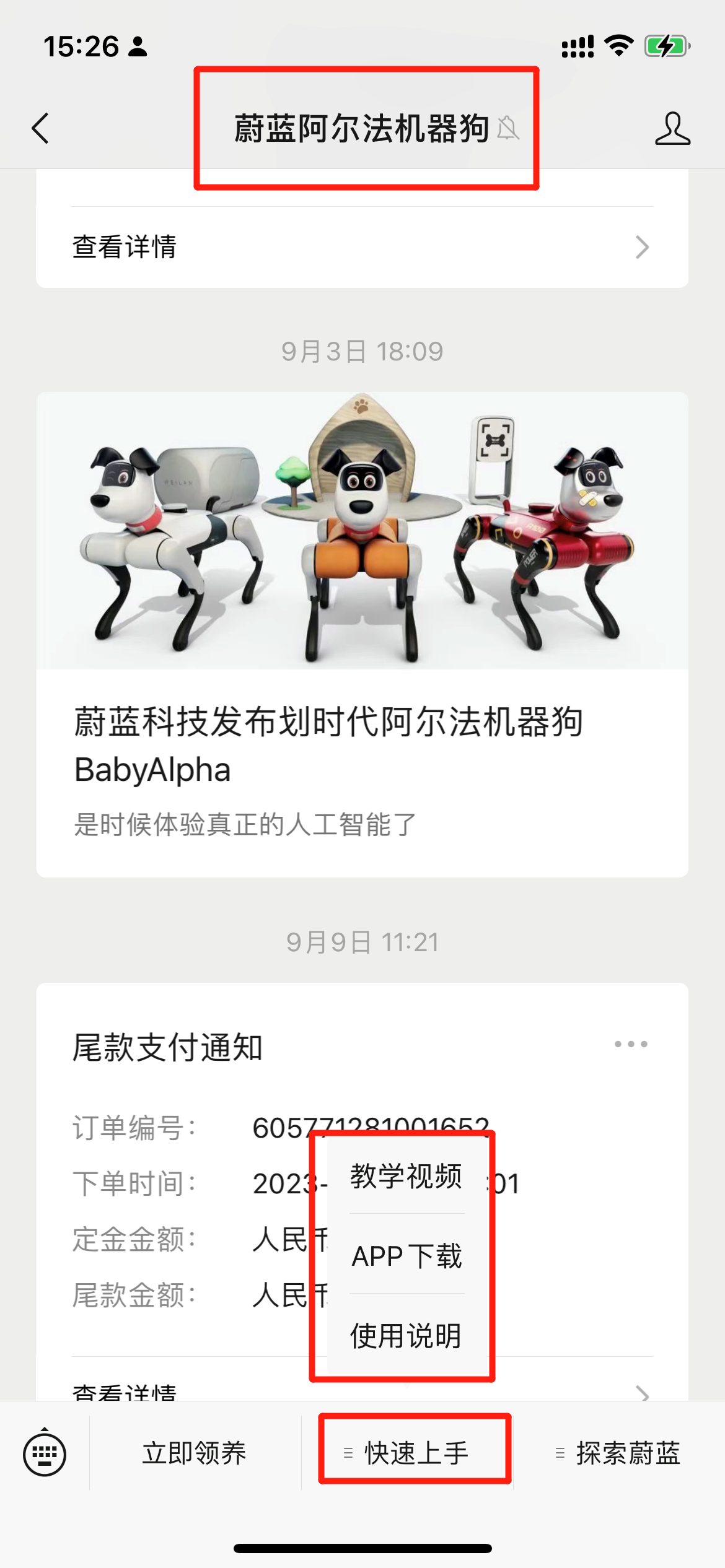 已购买客户:好的,我把您的问题记录下了,麻烦您提供下订单编号、下单手机号或者机器狗序列号,会直接移交专属的客户经理来处理。请您稍等哦,我们会在24h内给您回复。这个下单手机号可以直接联系到您吗?(注意:①未发货客户无序列号;②尽量多留客户信息,以防客户信息给的不对,又联系不到反馈问题的客户,造成问题升级)
