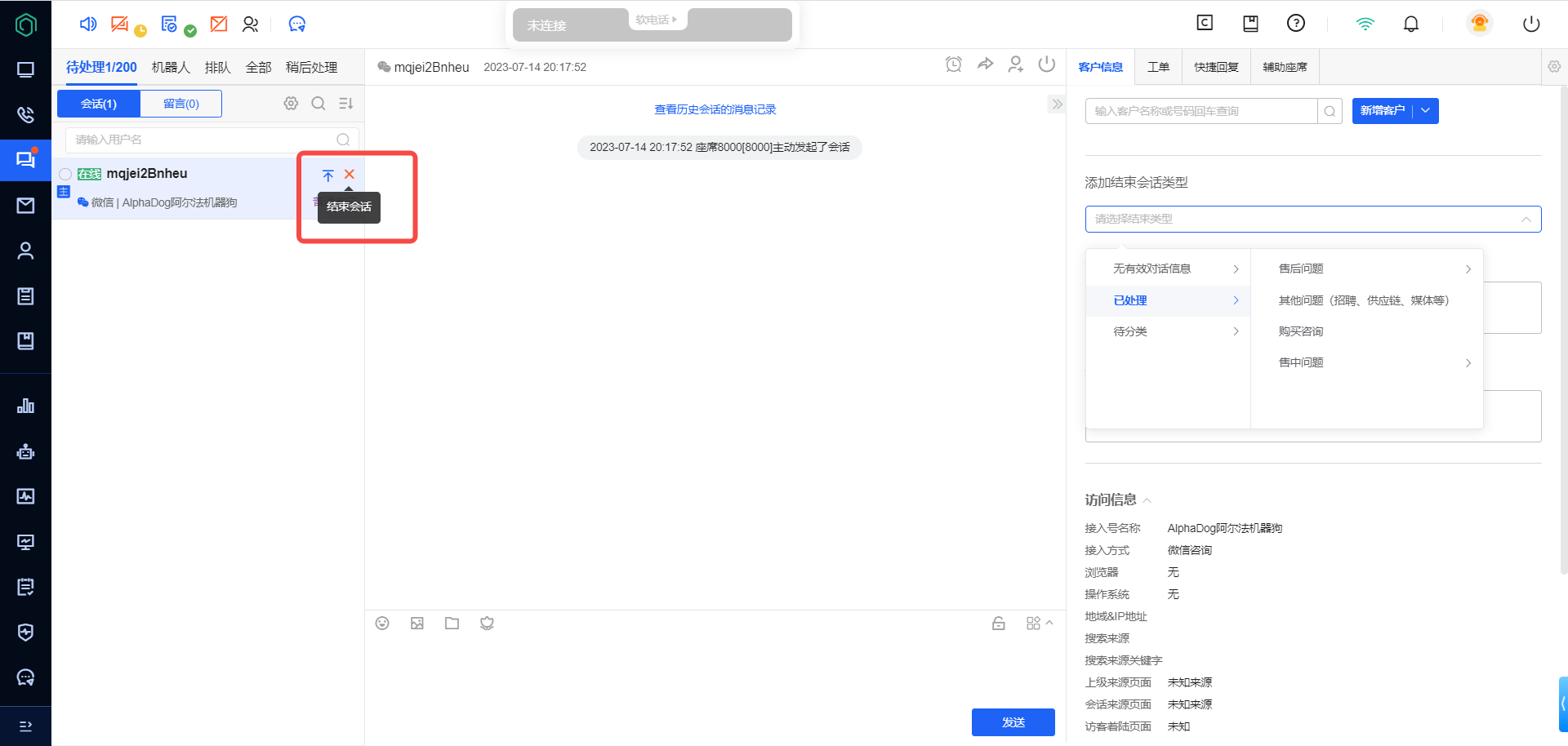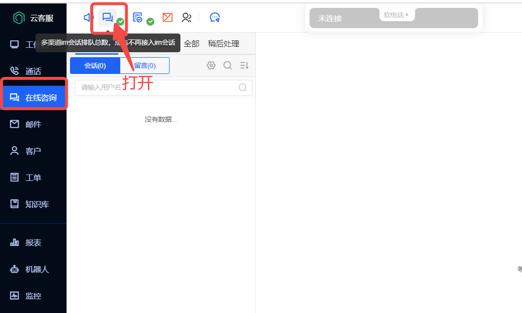 会左上角置顶,方便直接点击这里打开建立新客户,或工单。