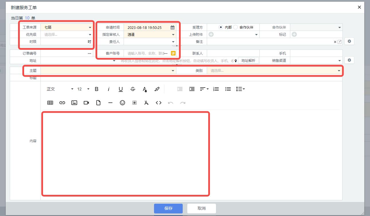 【主题、类别】参考“2.3.1 工单主题(类型)”的填写说明