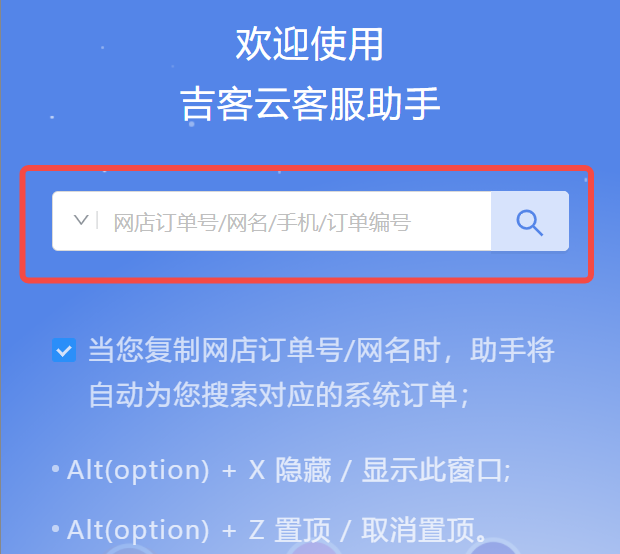 【操作】打开“吉客云客户助手”,直接输入客户任意信息,如:订单/姓名/电话信息,查询订单