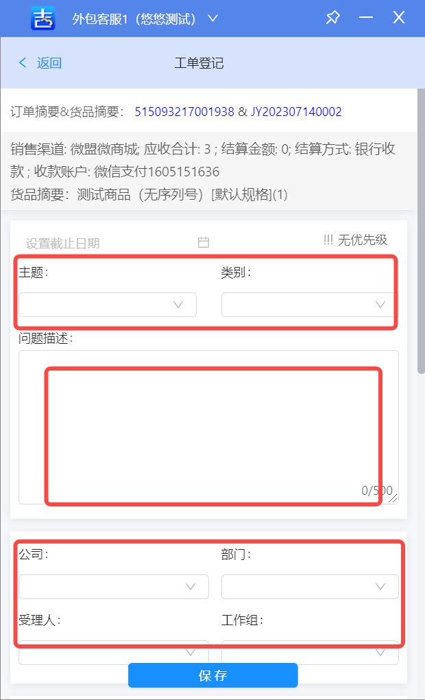 【说明】没有购买的客户系统是没有客户信息的,所以需要先建立客户信息,再建工单。