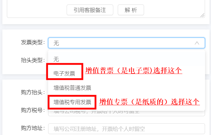发票类型,根据客户的需求,选择:专用/普通