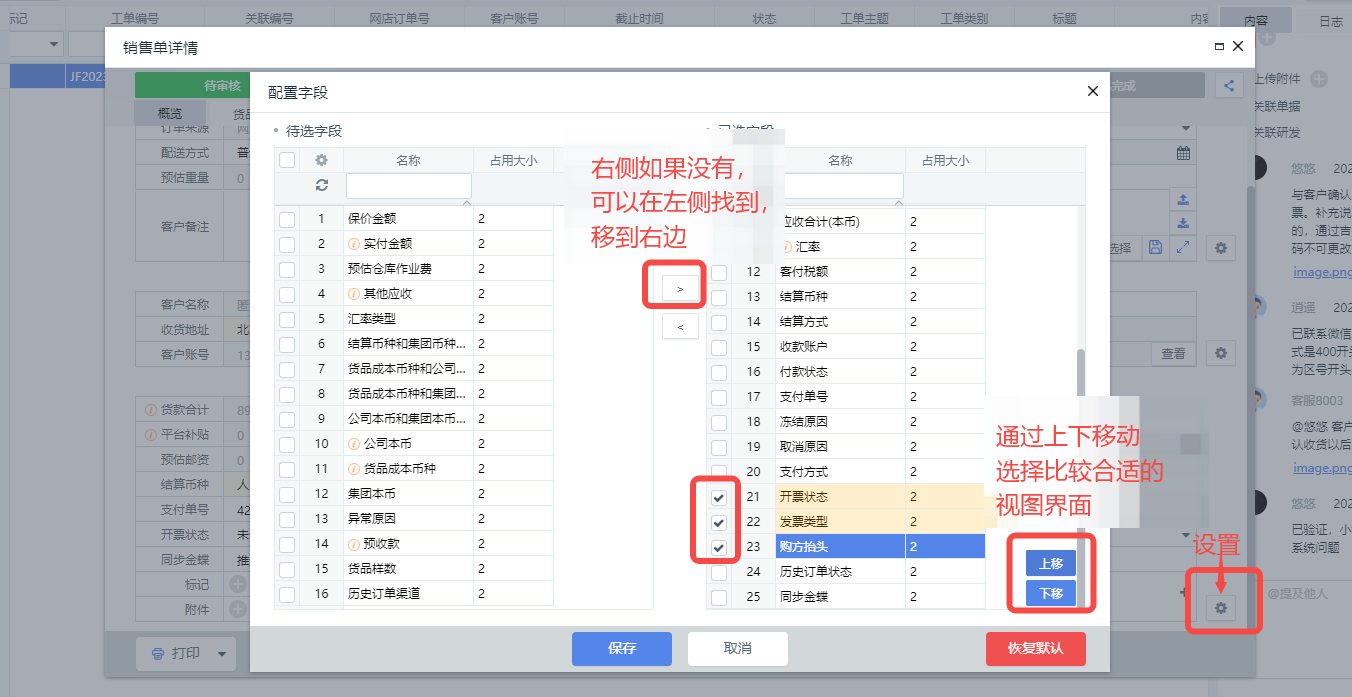 如果找不到的话,可以在“销售单详情”里的设置那配置出来